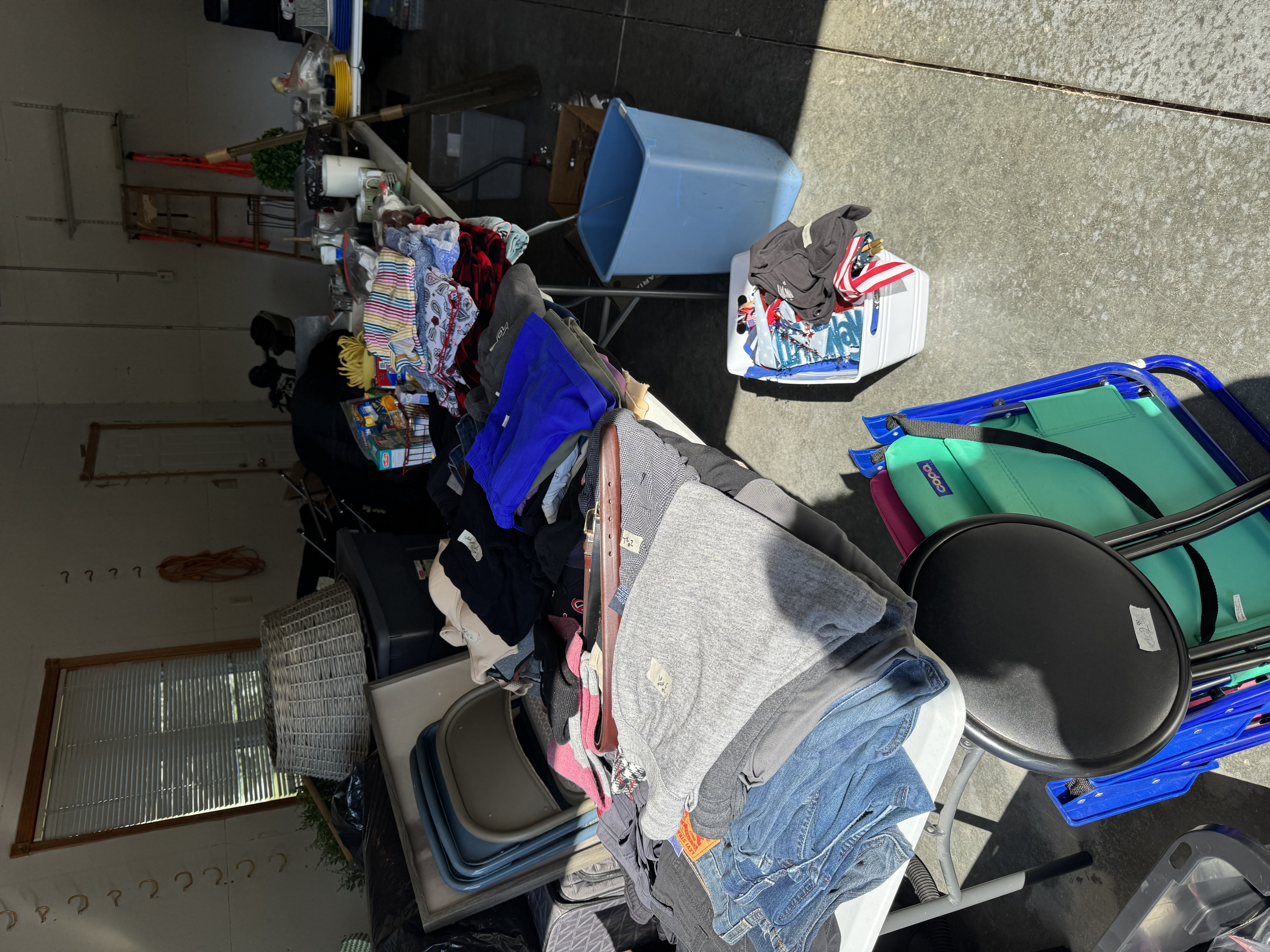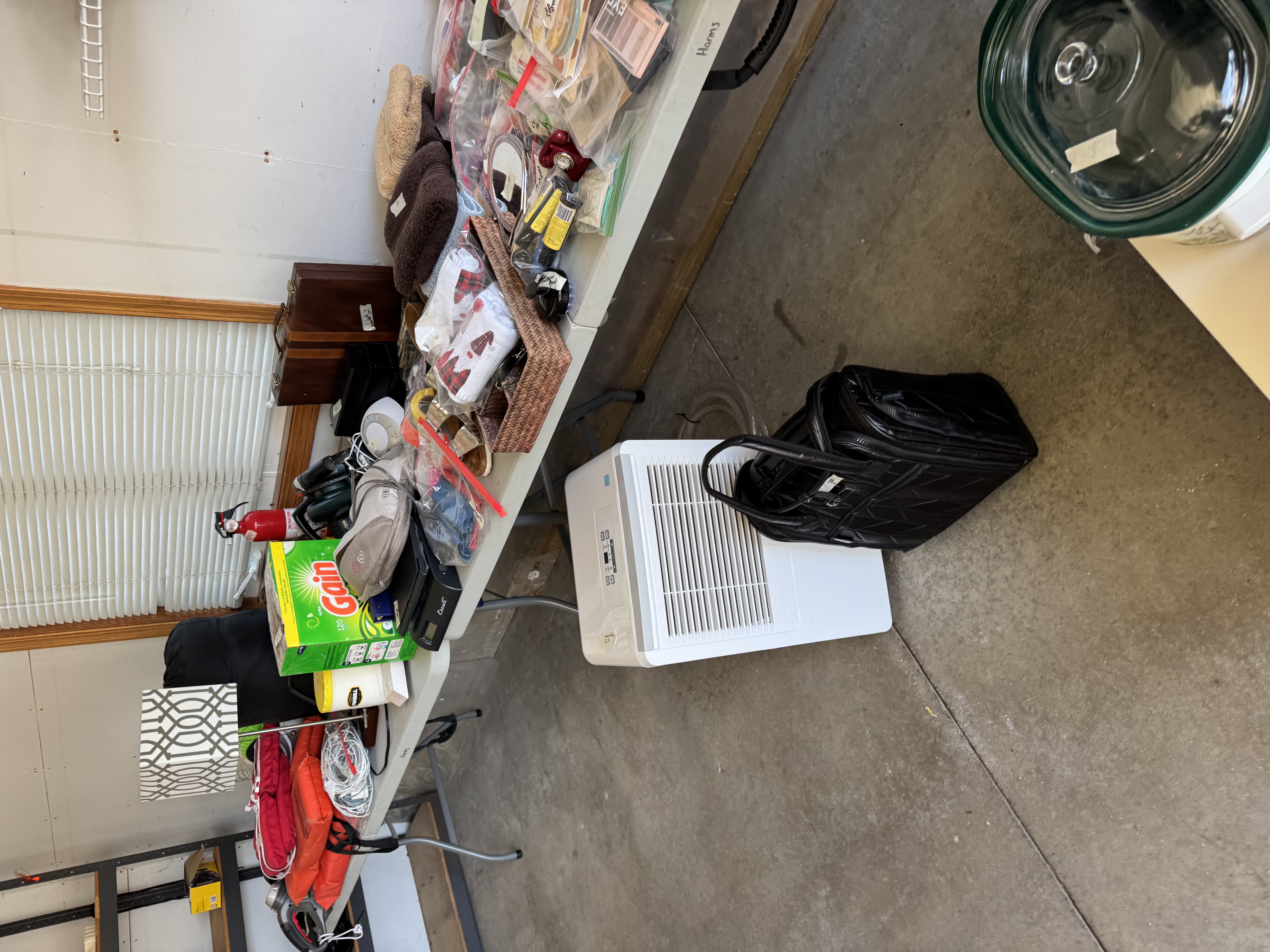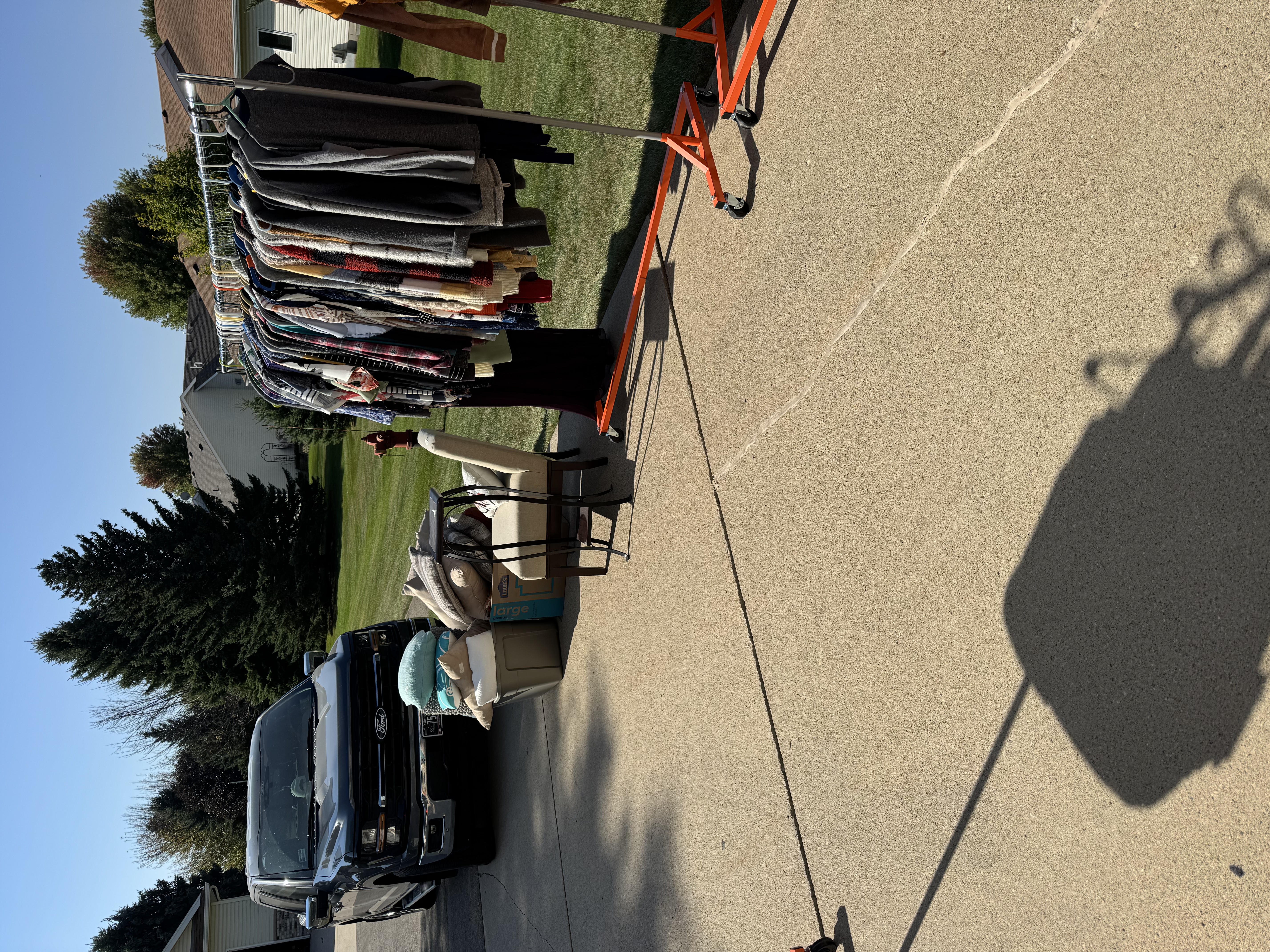 It all has to go nothing can go back in the house! Rae Dunn mugs, pots& pans, glassware, dishes, rugs, home decor, Birkenstock sandals, a fishing poles, desk, purses and bags, jewelry, name brand L/XL women’s clothing lots of sweaters , zyia, stitch fix, men’s clothes, shoes, knee scooter, shower chair, chairs, tons of nice toss pillows, floor lamps and much more miscellaneous stuff!