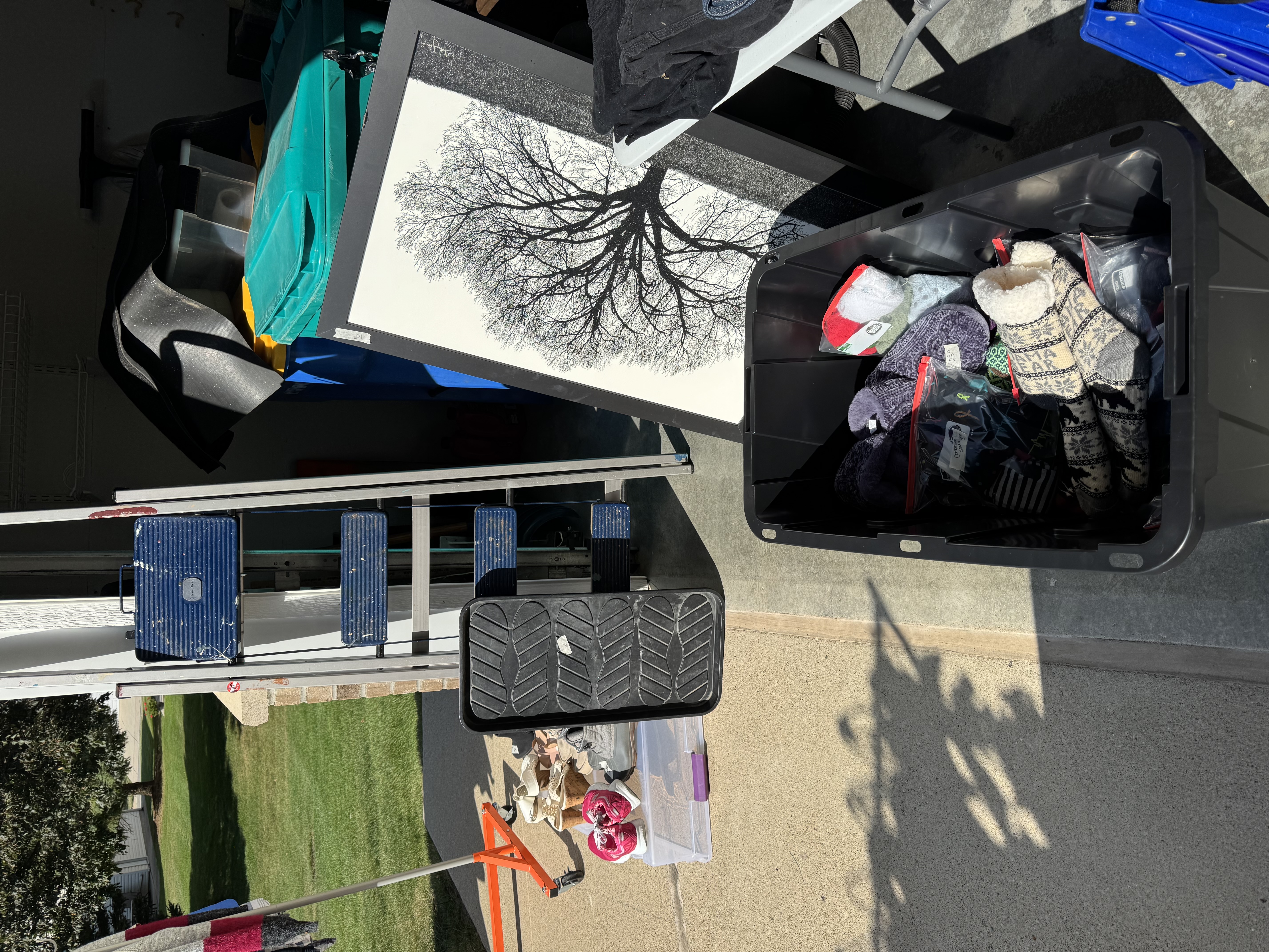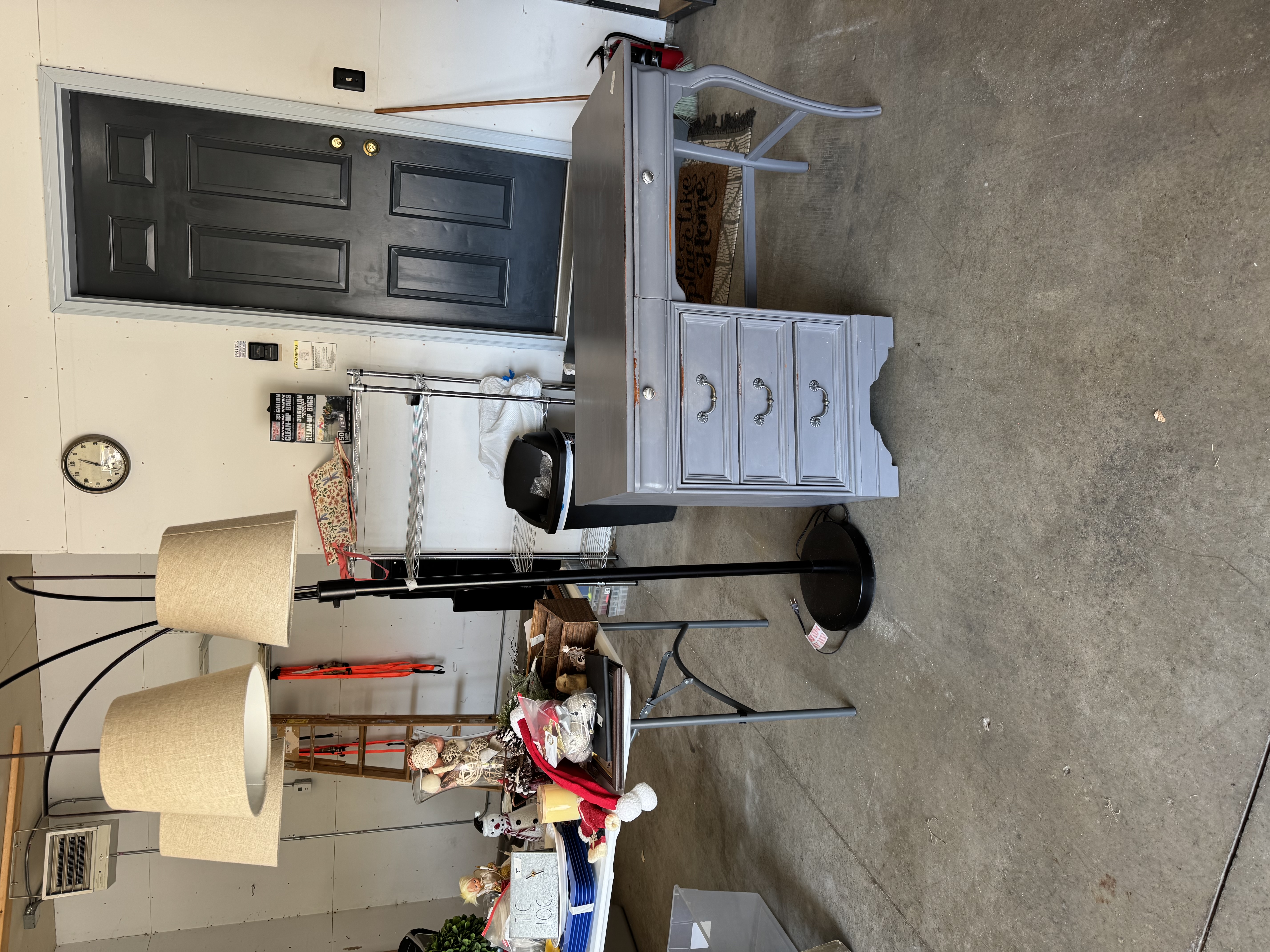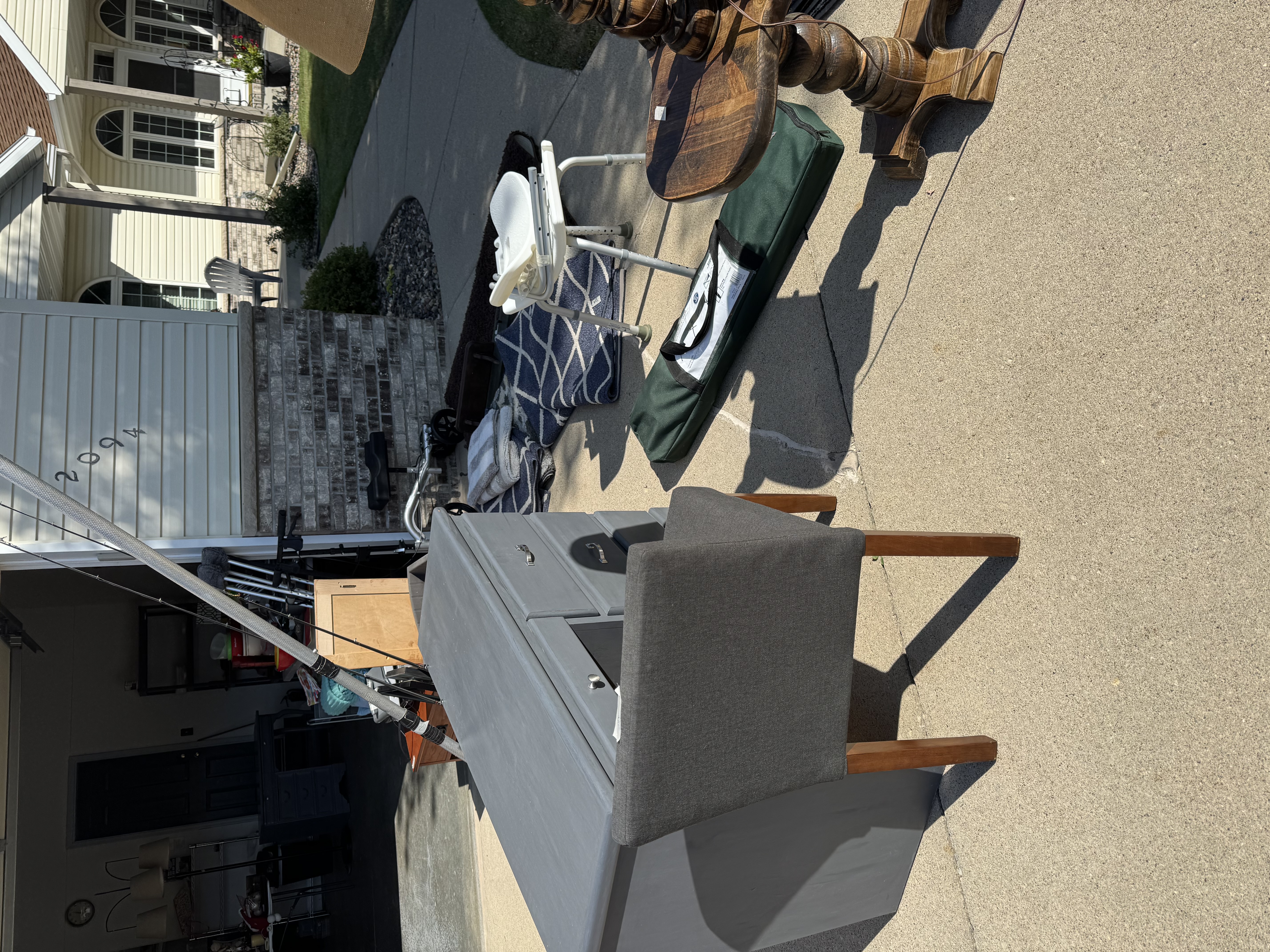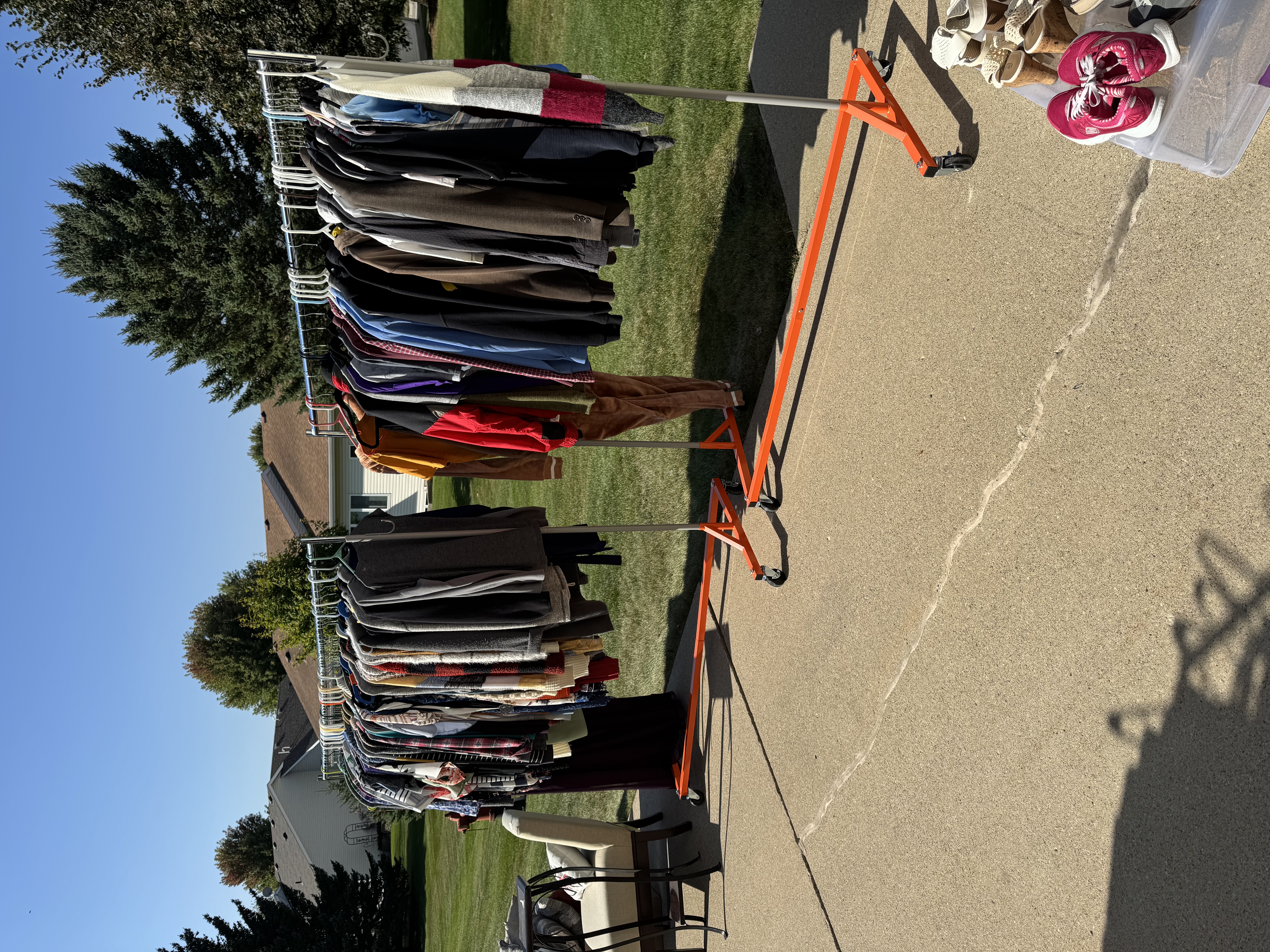 It all has to go nothing can go back in the house! Rae Dunn mugs, pots& pans, glassware, dishes, rugs, home decor, Birkenstock sandals, a fishing poles, desk, purses and bags, jewelry, name brand L/XL women’s clothing lots of sweaters , zyia, stitch fix, men’s clothes, shoes, knee scooter, shower chair, chairs, tons of nice toss pillows, floor lamps and much more miscellaneous stuff!